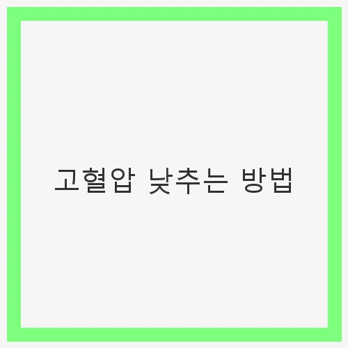 고혈압 낮추는 방법